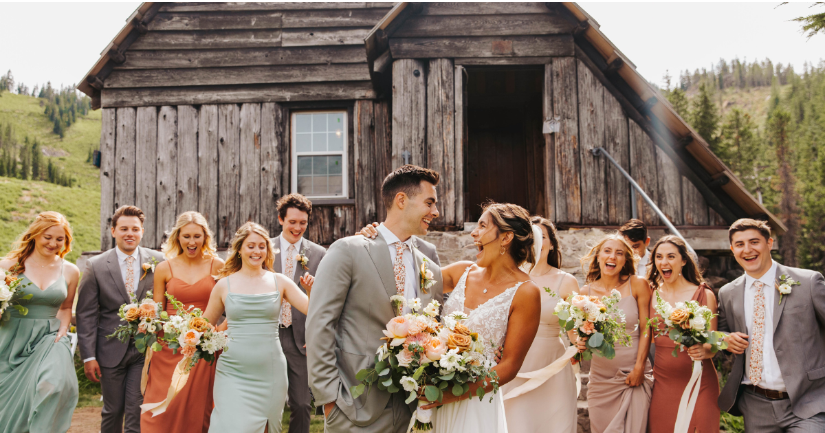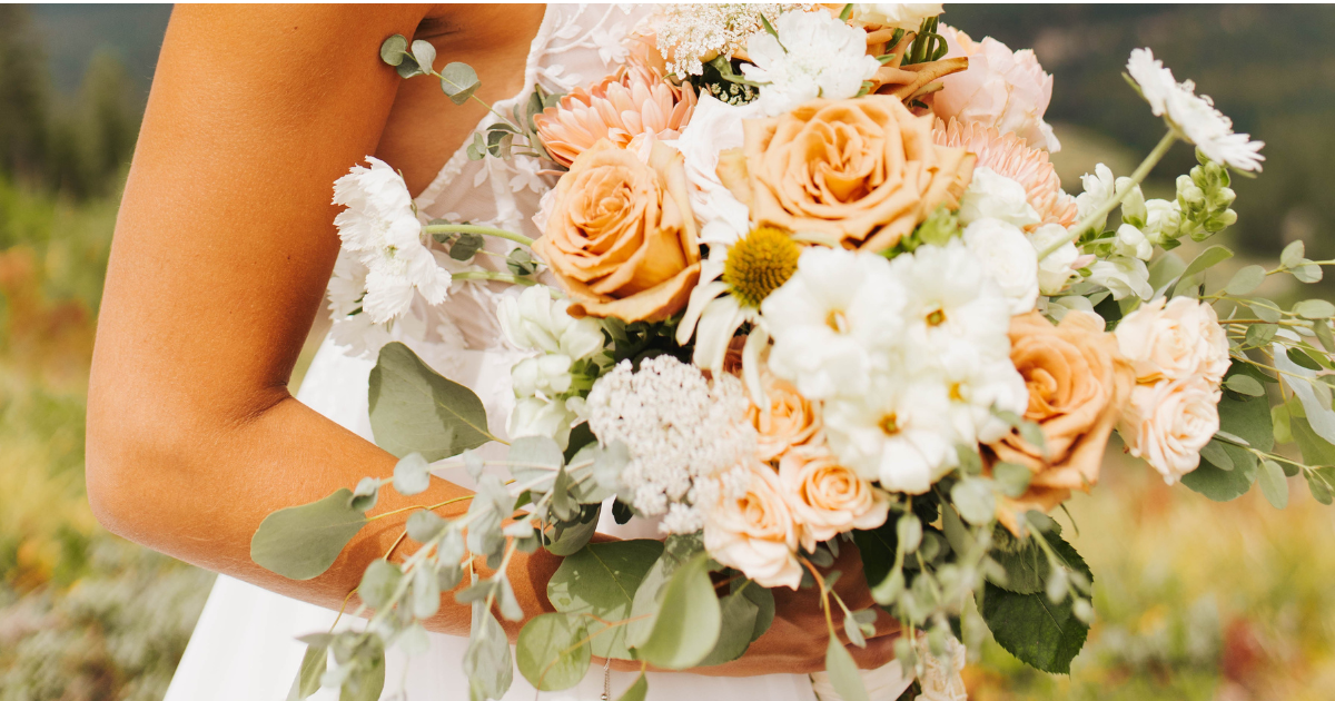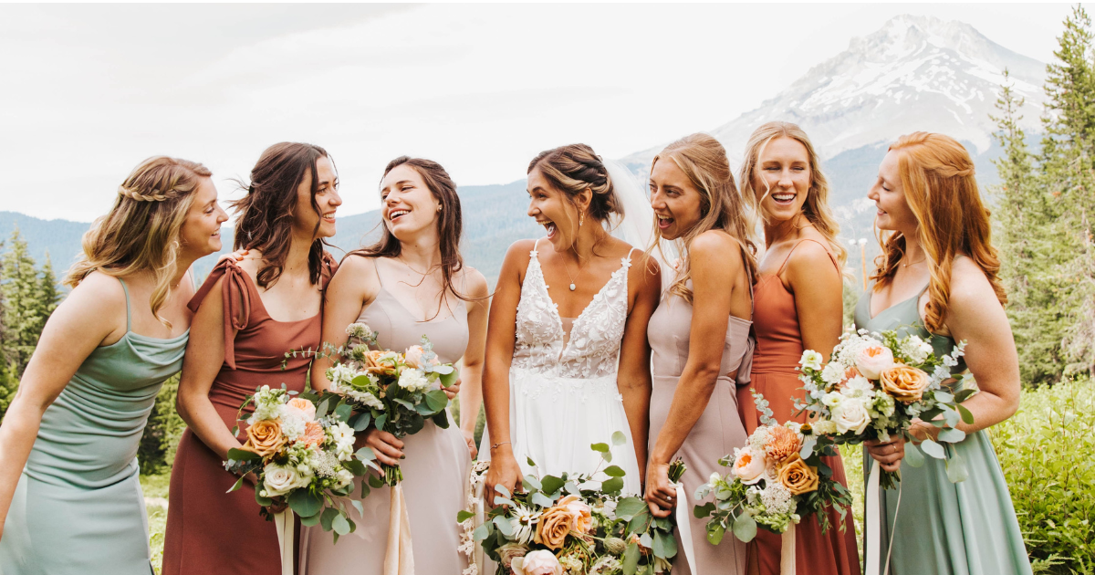 An adventurous wedding on Mt. Hood in Oregon included guests riding the ski lift up to the ceremony space, and taking an alpine slide on the way down to the reception! With families that share evident humor, kindness, and delight, this couple was meant to be together. It was a joy to design their flowers which included not only the reception and bridal party. Our team created an alpine garden hedge for the ceremony space, including traveling via mountain guides to get it in place! Terracotta roses with peach Juliet roses and stems of butterfly ranunculus were just part of the design to provide the color palette as well as natural movement in the alpine setting.